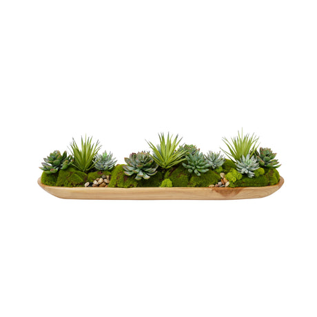 Faux Moss,Succulents Arrangement in Metal Tray #S-84