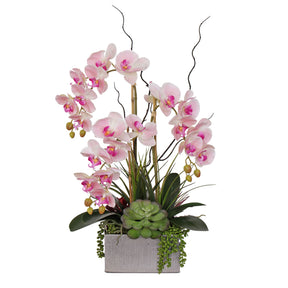 Jenny Silks Real Touch Pink Phalaenopsis Orchids and Succulents Flower Arrangement#F-132