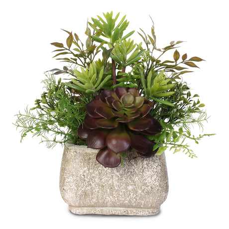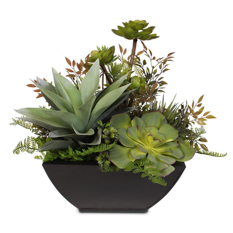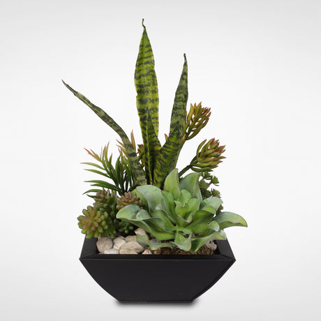 Artificial Succulent Arrangement in Square Black Metal Container #61