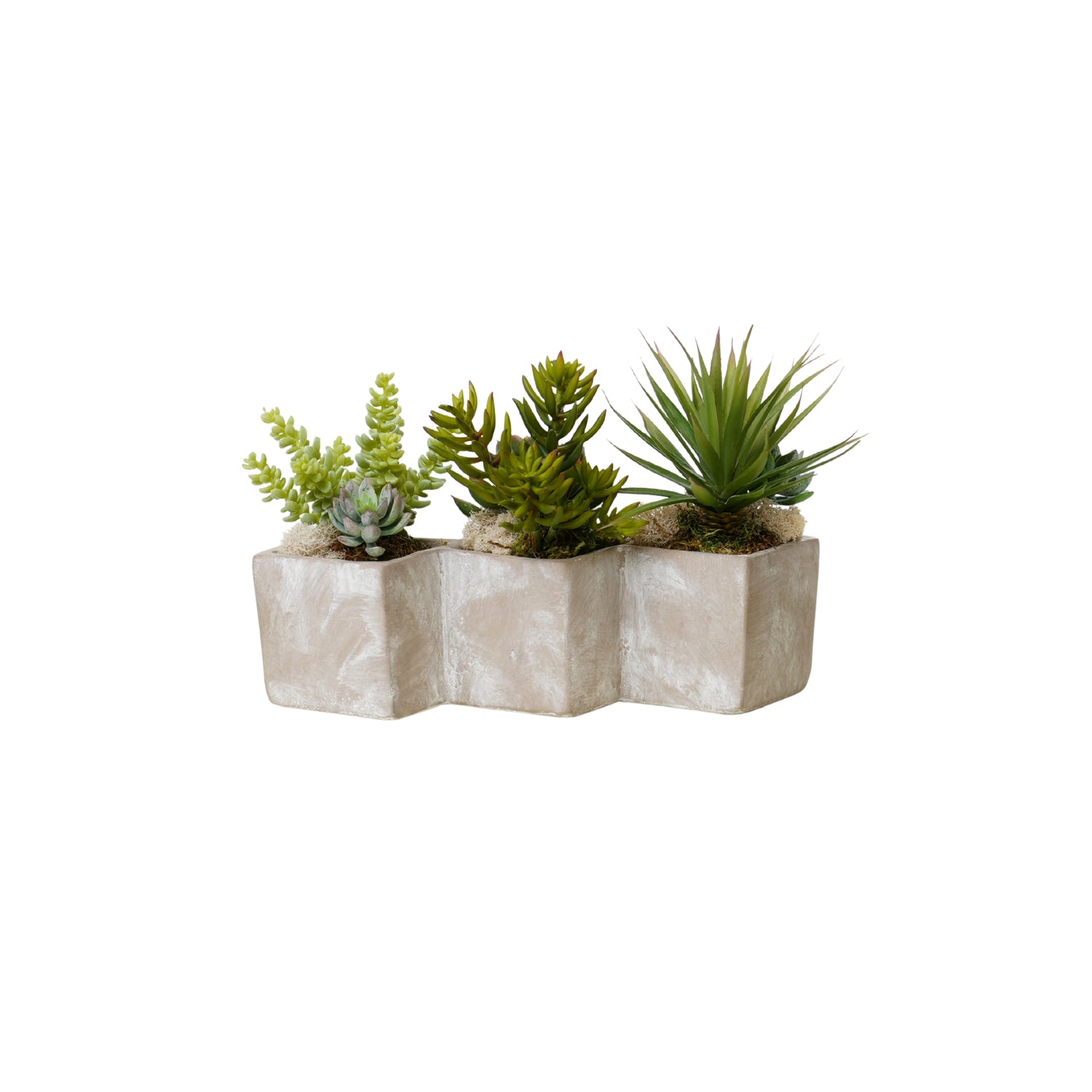 Succulents Arrangement in Concrete Triple Pot #S-73