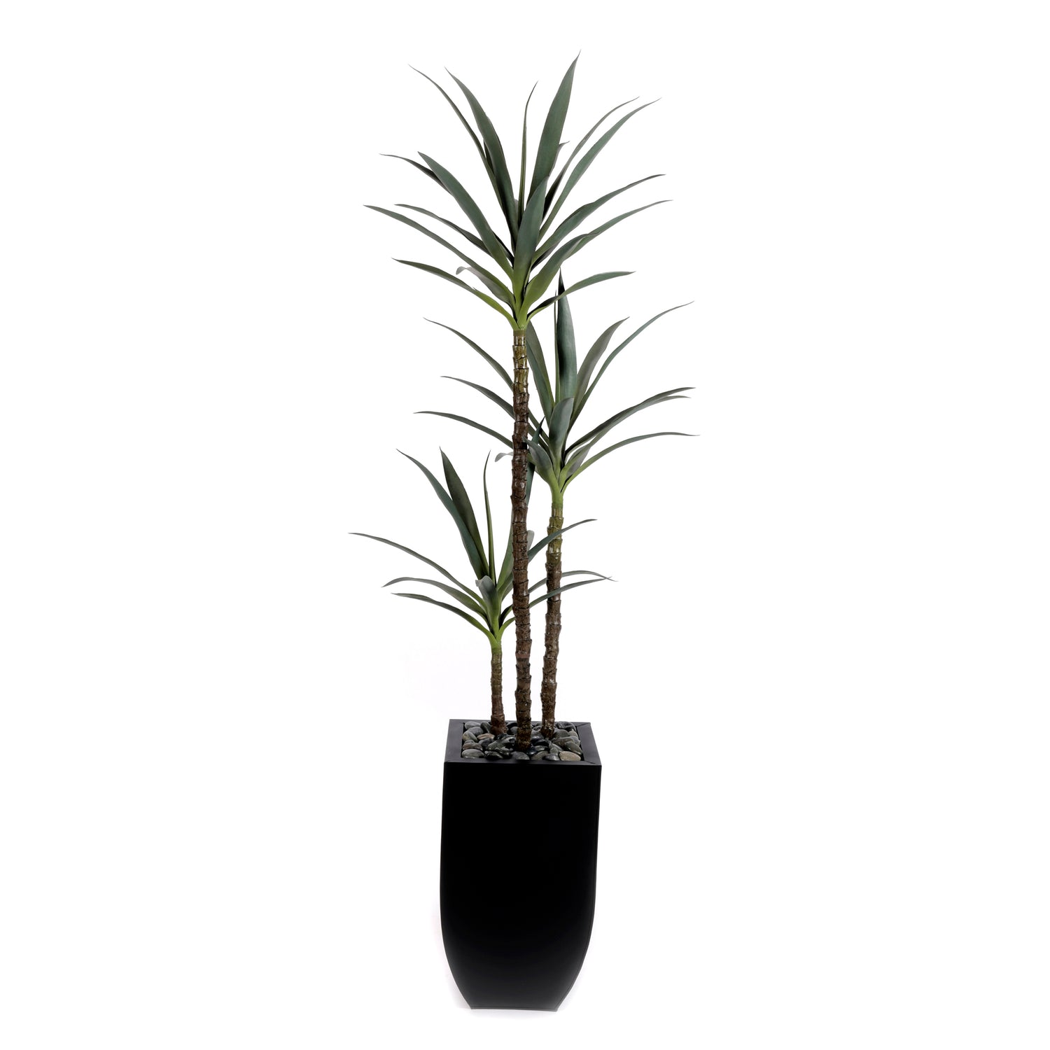 71"H Artifical Yucca Tree with Pebbles in Black Tin Planter #T-110